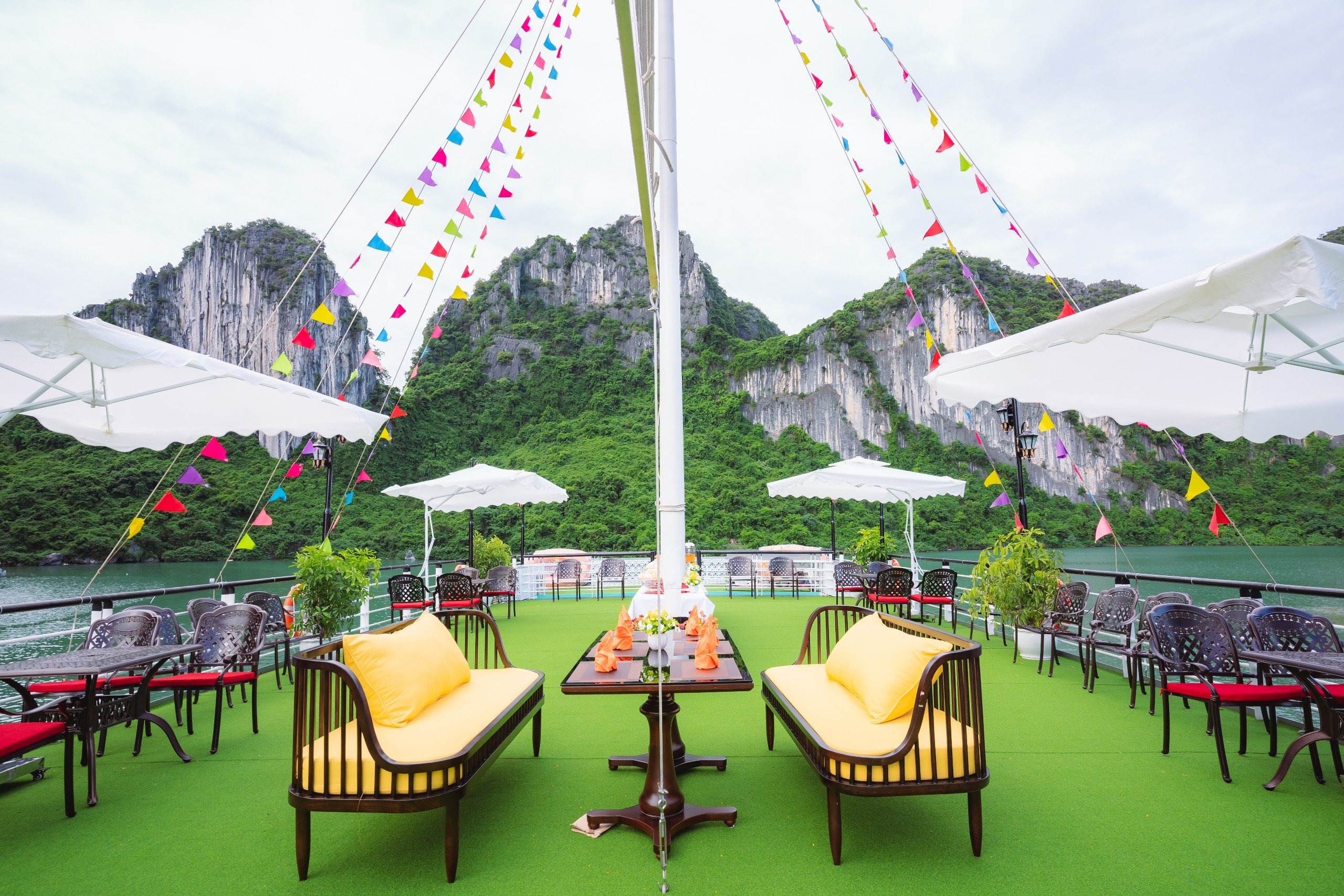 Finally, you will enjoy a sunset party, sunbathing on the upper deck with music and group touring fellows among the world’s iconic natural scenery before returning to Hanoi by bus.