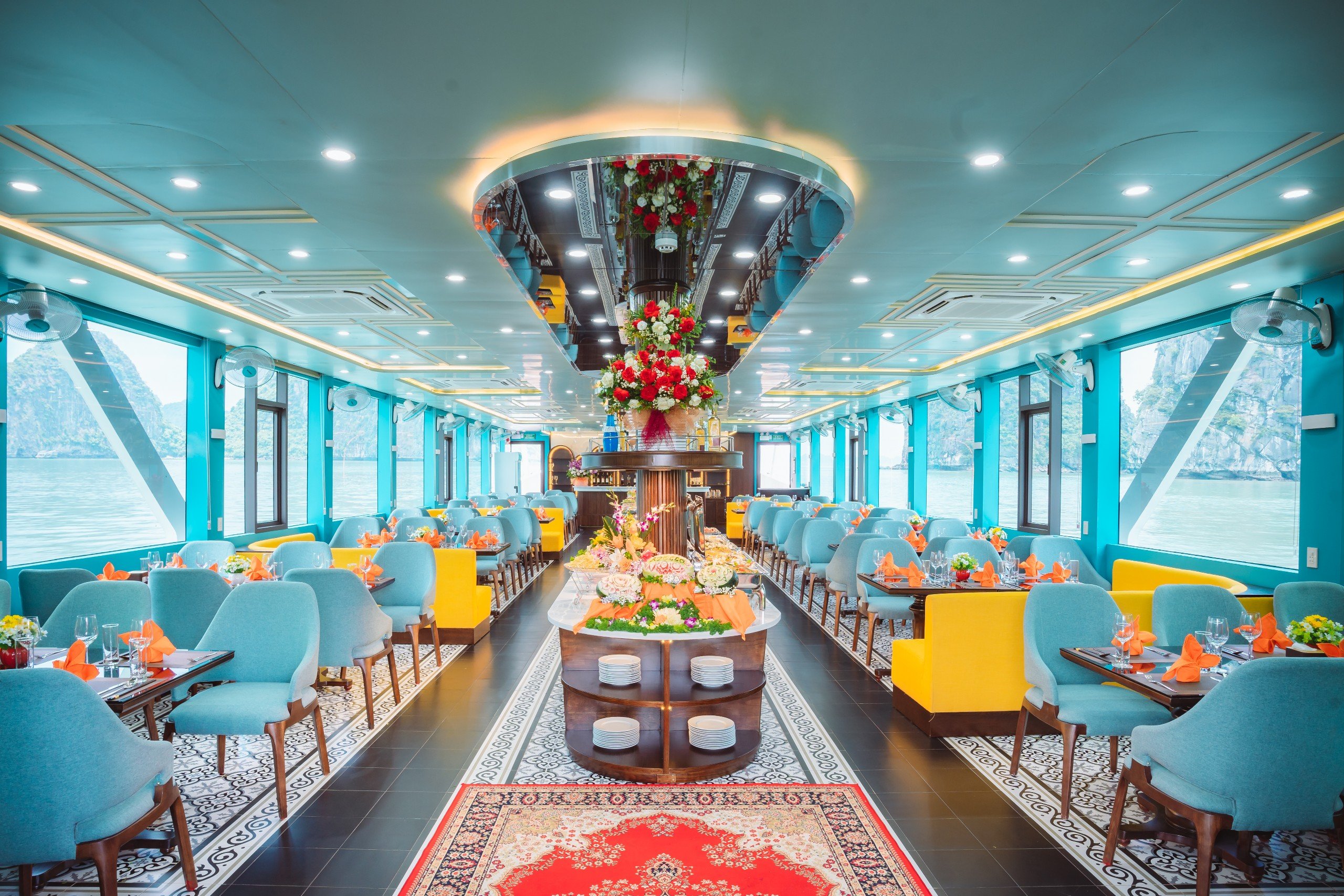 After a short 20-minute break, we will arrive at Tuan Chau Harbor for a 6-hour journey through a route which is noted for its numerous uninhabited islets and rocks, enjoying a buffet lunch on board.